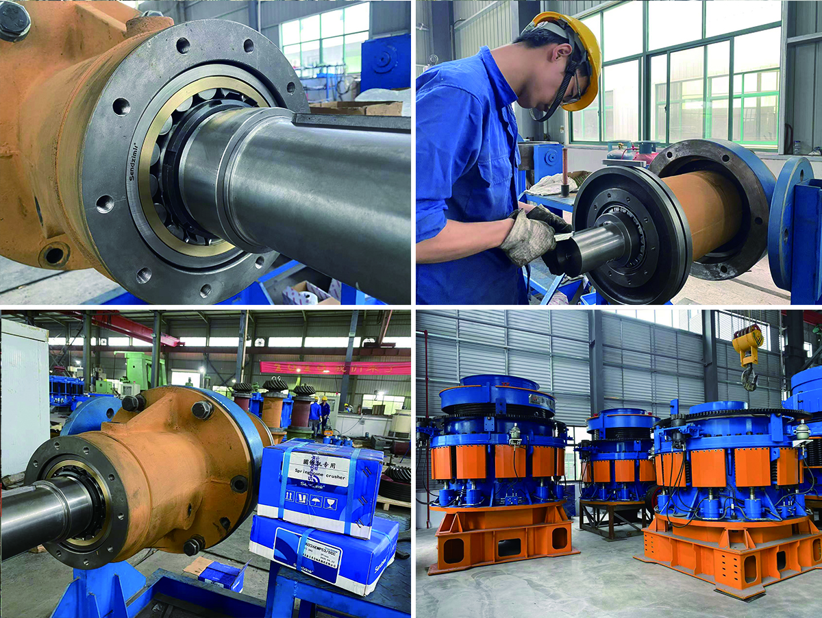 復(fù)合式彈簧圓錐破碎機(jī)以其機(jī)身緊湊、破碎能力強(qiáng)、破碎比大等優(yōu)點(diǎn)成為二級破碎以及終極破碎最普遍的機(jī)型之一。隨著轉(zhuǎn)速的不斷提高,復(fù)合式彈簧圓錐破碎機(jī)結(jié)構(gòu)內(nèi)的滑動軸承越來越多的被滾動軸承所替代。